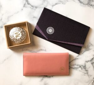 牛本革製の長財布や二つ折り財布などがあり、上質な作り。 表面には**菊の御紋(十六八重表菊)**がさりげなく箔押しされていて、上品なデザインになっている。 本革財布としては破格の2,000〜5,000円前後という手頃な価格帯が特徴で、コスパの良さが人気の理由になっている。